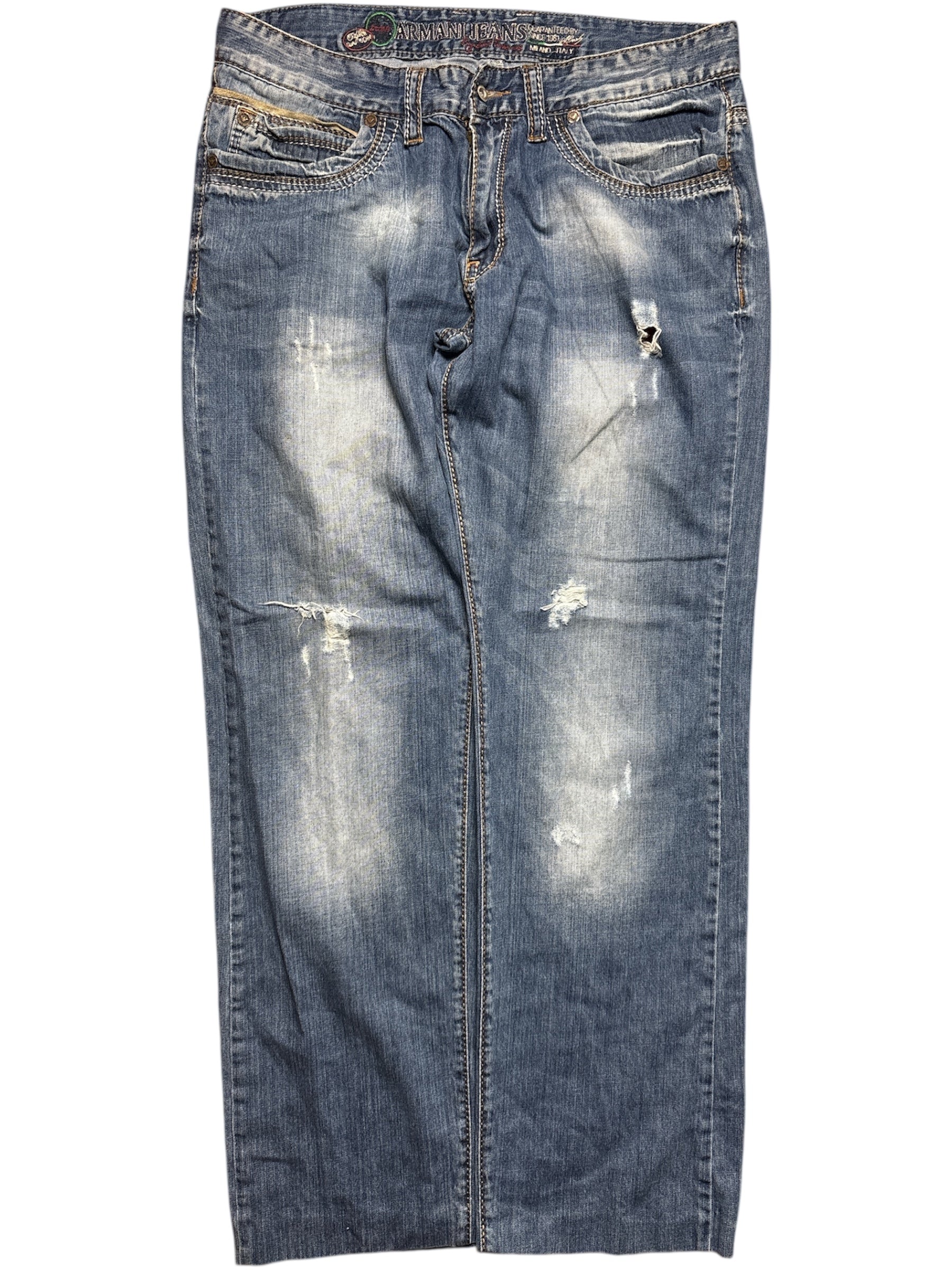 Distressed blue armani jeans
